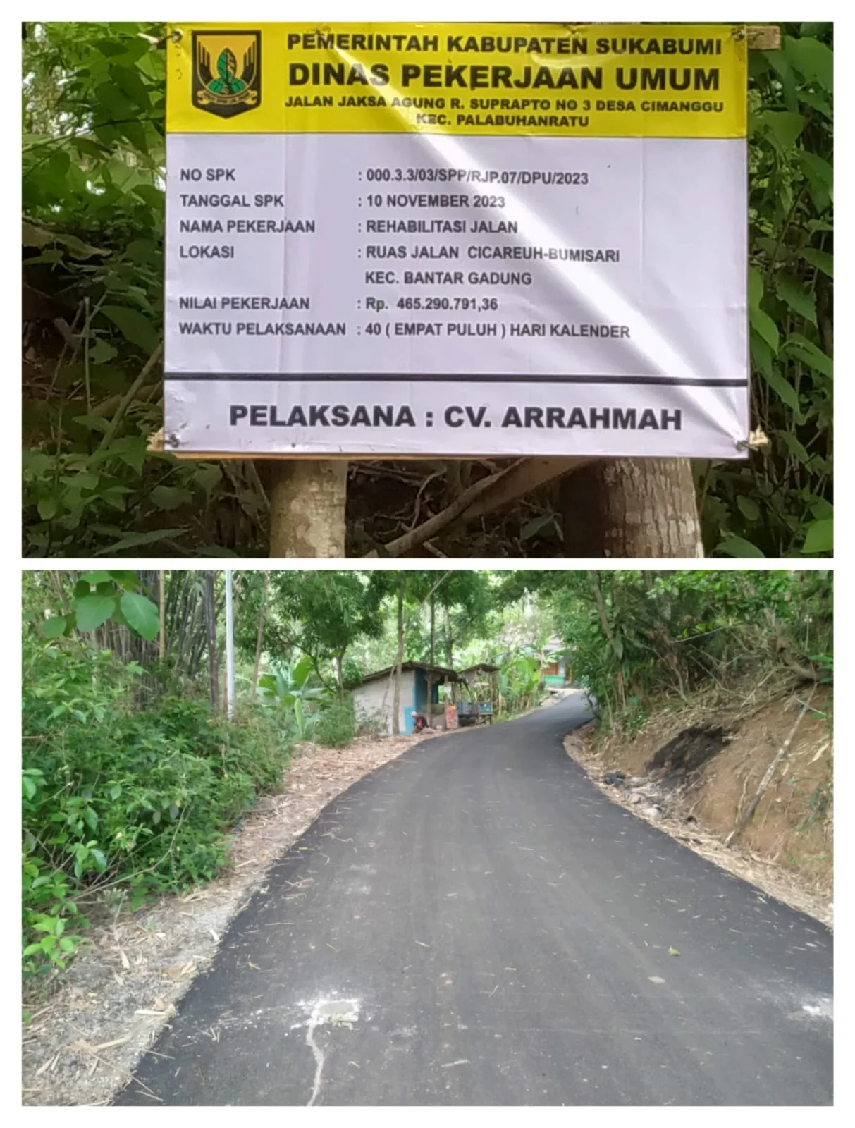 Sukabumi – kabarpubliknews.com, kepala Desa Mangunjaya Dade Solahudin ucapkan terima kasih kepada DPU (dinas pekerjaan umum) kabupaten Sukabumi dan pihak CV pelaksana proyek, lantaran pengerjaan nya yang cukup baik, hingga terlihat kualitas pekerjaan dan teknik nya, ujar Kades Mangunjaya yang juga sebagai ketua APDESI kecamatan Bantargadung, Kamis (30/11/2023).