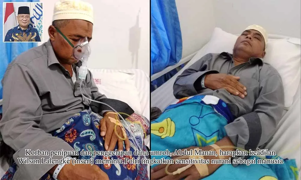 Korban tindak pidana penipuan dana umroh, Abdul Manan, S.Pd, dikabarkan masuk rumah sakit (lagi) di RS PMI Lhokseumawe, Aceh, karena muntah darah terus-terusan dan komplikasi penyakit yang dideritanya sejak beberapa tahun lalu. Hal itu disampaikan Ketua Umum Persatuan Pewarta Warga Indonesia (Ketum PPWI), Wilson Lalengke, kepada media ini, Rabu, 29 November 2023.