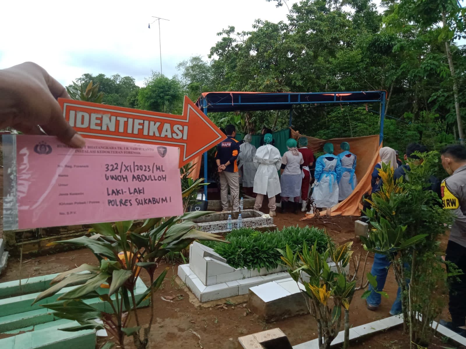 Kegiatan Ekshumasi ini melibatkan dokter Forensik dari Rumah Sakit Pusat Polri Kramat Jati Jakarta yang dibantu oleh Dokkes Polres Sukabumi.