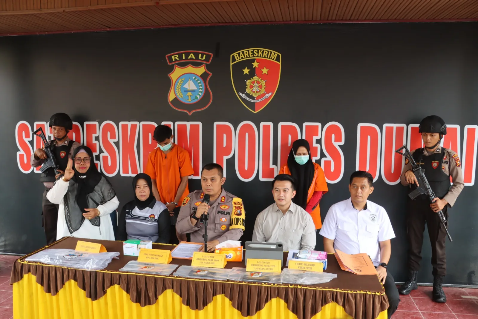 Kapolres Dumai AKBP Dhovan Oktavianton SH SIK MSi pada pelaksanaan press conference didampingi Kasat Reskrim AKP Bayu Ramadhan Effendi STK SIK MH, Kasi Humas AKP Yusnelly SSos dan Kanit PPA Satreskrim Ipda Lius Mulyadin, membenarkan pengungkapan perkara kekerasan terhadap anak dibawah umur yang menyebabkan kematian (aborsi).