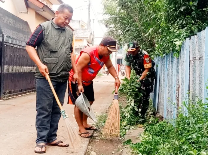 Tambun Bekasi – Dalam Rangka mewujudkan lingkungan bersih dan kepedulian terhadap lingkungan masyarakat, Babinsa Koramil 01 Tambun Kodim 0509 Kabupaten Bekasi, Serda Agus Rohman bergotong royong bersama warga membersihkan lingkungan di Kampung Pekopen RT 03 RW 05 Desa Tambun Kecamatan Tambun Selatan Kabupaten Bekasi, Pada Kamis 7/12/2023.
