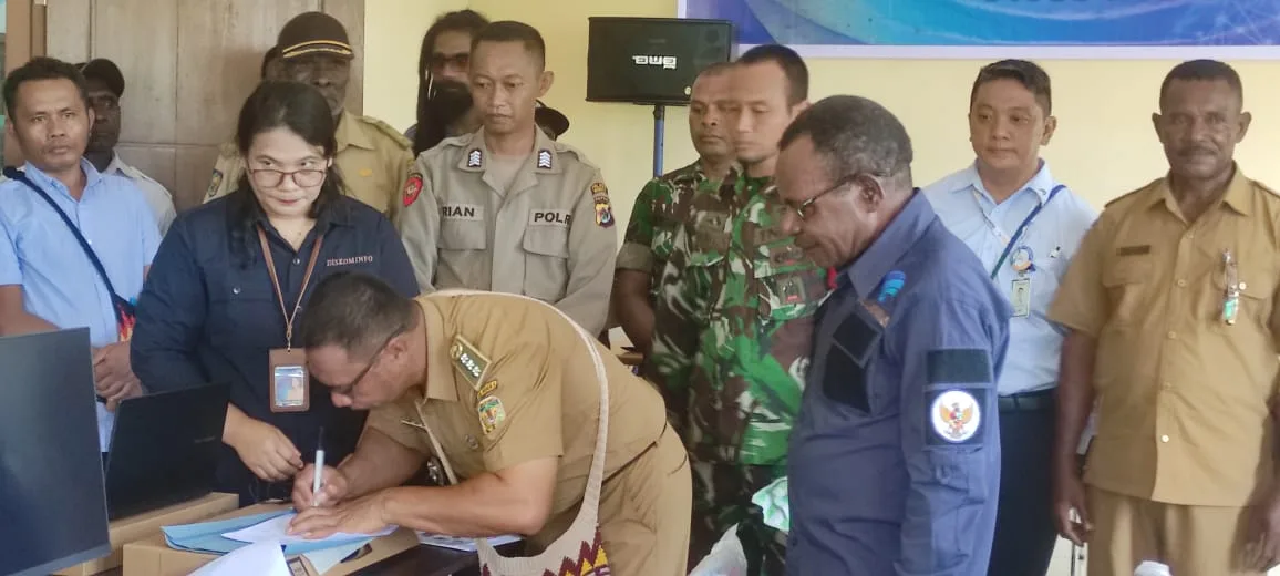 Dalam launching kampung digital tersebut, dilaksanakan penyerahan secara simbolis laptop oleh Plt. Kadis Kominfo Kab. Mimika, Albertus Tsolme, S.Pd kepada Kadistrik Mimika Barat, Christian P. Warinussi, S.Sos.