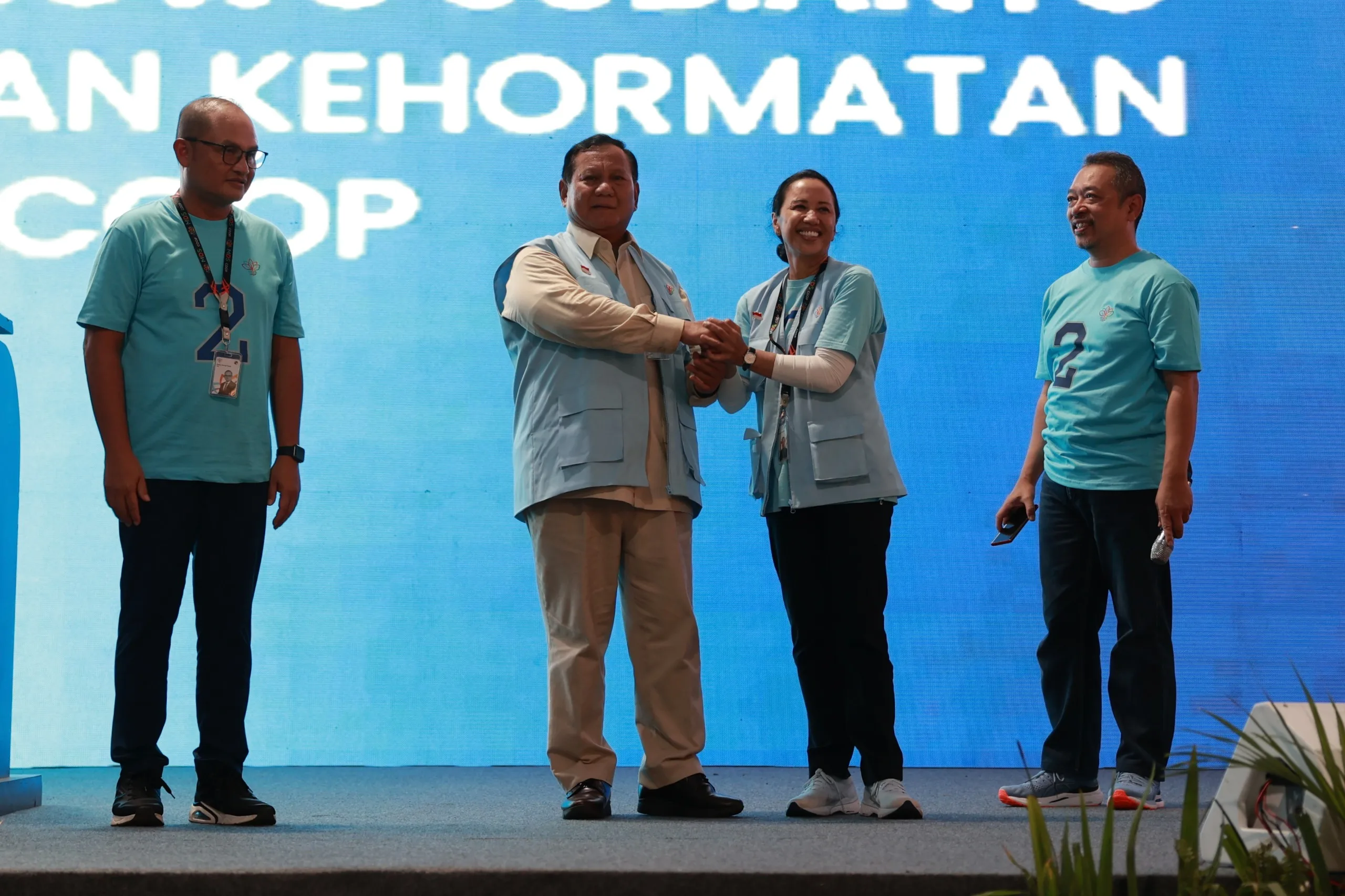 “Saya kaget, saya terharu, dan saya sangat menghormati Ibu Rini [Soemarno] dan kawan-kawan,” tutur Prabowo. Rini Mariani Soemarno adalah Ketua Dewan Pembina Koperasi MDS Coop,