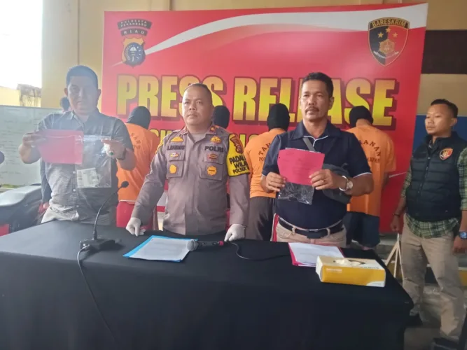 “Pelaku berjumlah 4 orang, yang sudah berhasil ditangkap 3 orang dan 1 DPO. Diantara pelaku masih anak di bawah umur,” kata Kapolresta Pekanbaru, Kombes Pol Jeki Rahmat Mustika SIK melalui Kapolsek Tampan Kompol Asep Rahmat SH SIK MM saat konferensi pers, Sabtu (27/01/2024).