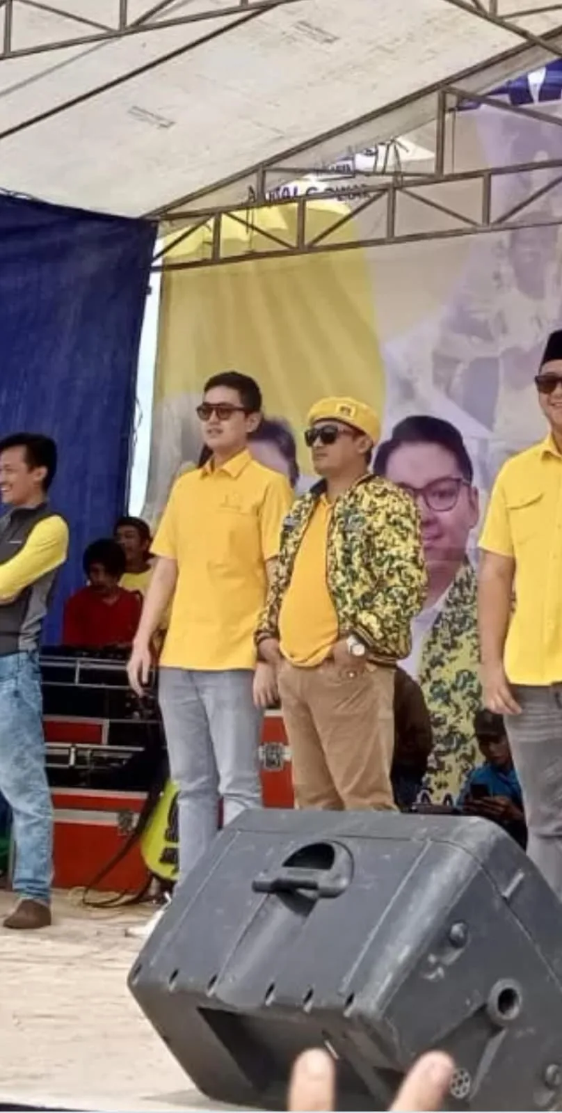 Mengutarakan memperkenalkan diri sebagai calon legislatif dari partai Golkar, kepada Masyarakat yang hadir beliau sampaikan saya mohon Doa dan dukungannya pilih saya no 10 di tanggal 14 coblos no 10 dari partai Golkar, Kerja Cerdas Kerja Tuntas dan Selalu Bermasyarakat.