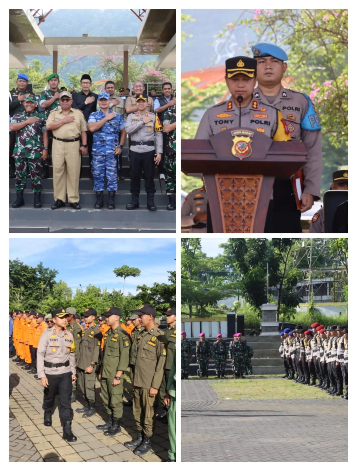 ” Khusus untuk Polres Sukabumi 781 personil, 300 pasukan TNI, akan sebanyak 100 anggota Brimob dan ribuan dari Pemda dan linmas akan bergeser untuk mengamankan puncak pesta demokrasi yang akan dilaksanakan pada tanggal 14 Pebruari nanti, ” Ucap Tony pada momen arahannya kepada para peserta apel.