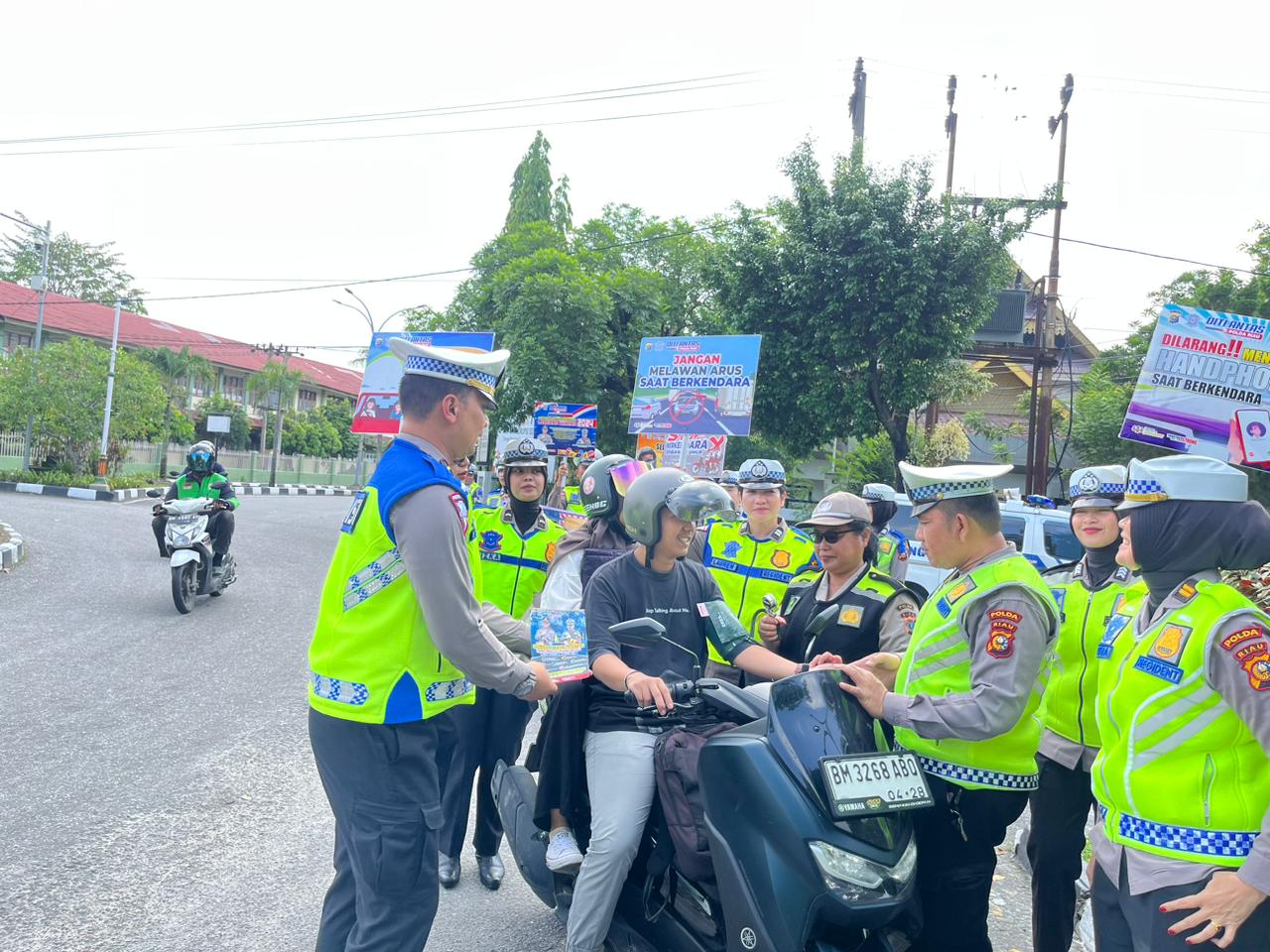 Senin 11 Maret 2024, kembali Team Subsatgas Binluh yang dipimpin Iptu Ratna Wilis gelar kampanye dan himbauan tentang keselamatan kepada masyarakat pengguna jalan di persimpangan Tugu Keris Jalan Diponegoro Pekanbaru.