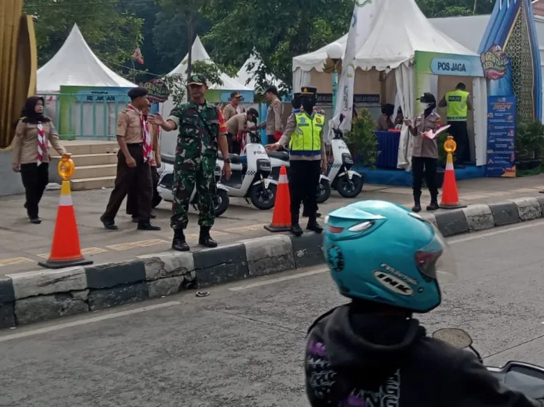 Serka Rahmat Turut melaksanakan kegiatan pengaturan lalu lintas bersama aparat kepolisian, Polres Metro Bekasi