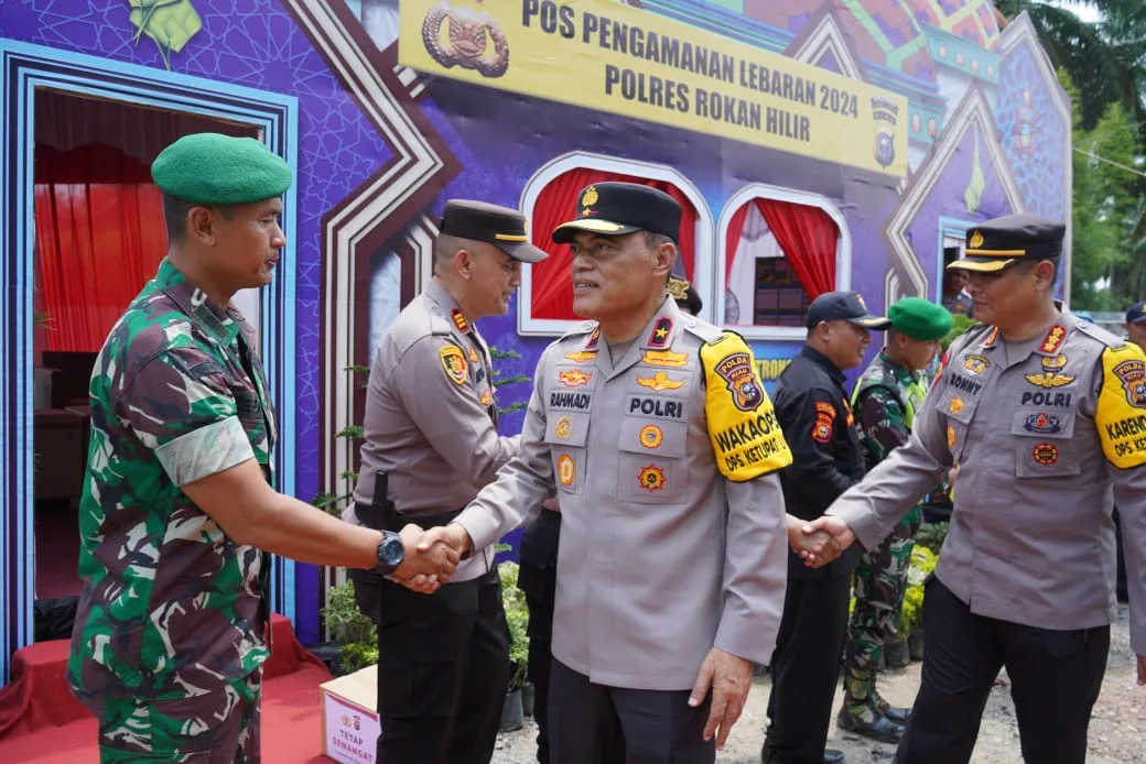 ROHIL – Dalam memastikan kesiapsiagaan Pos PAM dan Personel Operasi Ketupat Lancang Kuning dalam rangka pengamanan Hari Raya Idul Fitri 1445 H Wakapolda Riau Brigjen Pol K Rahmadi beserta rombongan lakukan peninjauan dan pengecekan di wilayah hukum Polres Rokan Hilir, Minggu (07/04/2024).