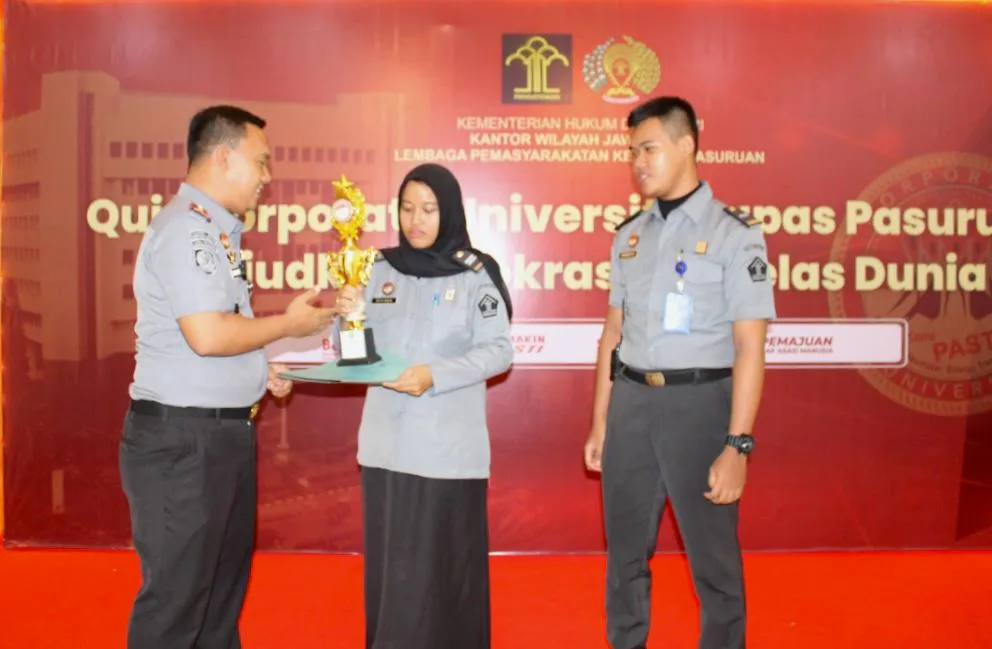 Mewujudkan Corporate University merupakan salah satu Resolusi Lapas Kelas IIB Pasuruan Tahun 2024 guna peningkatan kompetensi pegawai berkelas dunia. Quiz Corpu yang diikuti perwakilan dari masing-masing bidang diantaranya tim Rupam, Tata Usaha, Kplp, Adm. Kamtib, dan Binadik & Giatja.