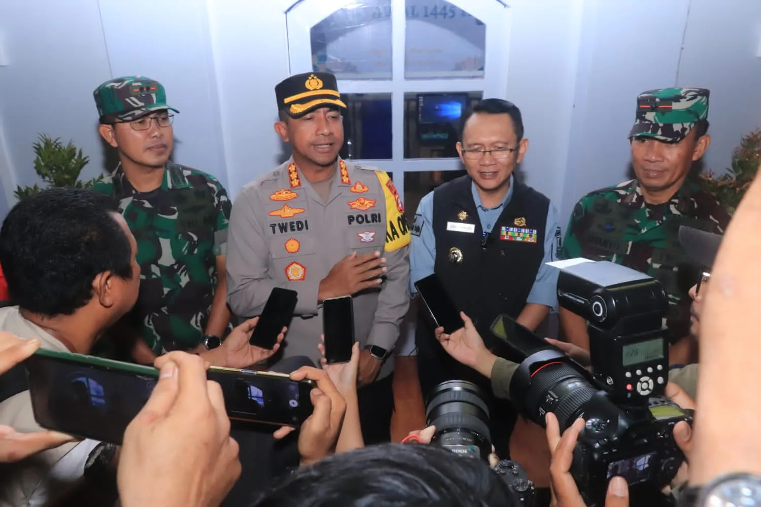 Kabupaten Bekasi – Menjelang Idul Fitri, personil gabungan dari TNI-Polri Bersama Forkompinda melakukan pengamanan di Kabupaten Bekasi Kegiatan pengamanan tersebut dipantau langsung oleh Danrem 051/WKT, bersama dengan Dandim 0509 dan Pj Bupati Bekasi. Personil gabungan tersebut melakukan pengamanan dengan cara berkeliling di beberapa ruas jalan di kabupaten Bekasi, Selasa 9/4/2024 Malam.