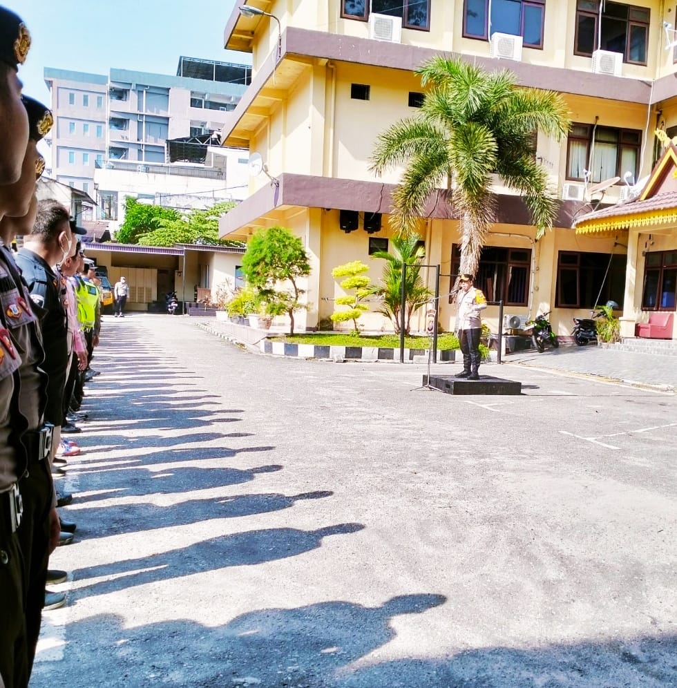 Kegiatan yang dilaksanakan di halaman belakang Mako Polresta Pekanbaru tersebut diikuti sebanyak 257 personil.