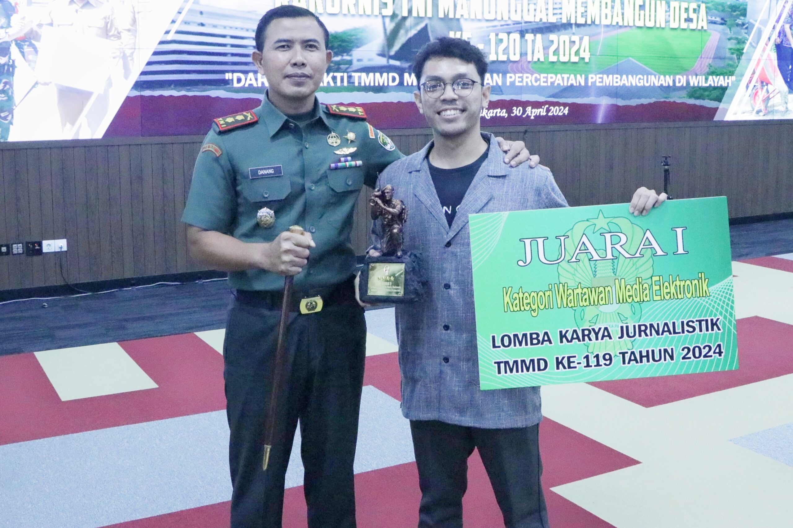 JAKARTA – Kodim 0509 Kabupaten Bekasi kembali meraih prestasi dalam lomba Karya jurnalistik pelaksanaan TNI Manunggal Membangun Desa (TMMD) ke-119 Tahun Anggaran 2024. Prestasi tersebut di terima langsung oleh Victor Hitler S dari Kompas TV dengan Judul: “TMMD Ke-119 Kodim 0509 Kab. Bekasi,Manunggal Membangun Desa Karang Mukti, di saksikan langsung oleh