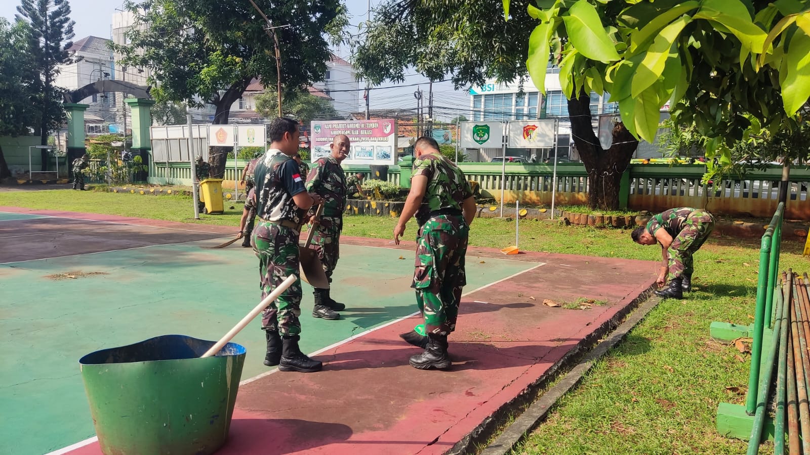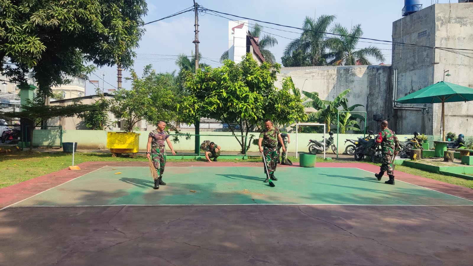 Tambun Bekasi – Anggota Koramil 01/ Tambun Kodim 0509/Kabupaten Bekasi, usai melaksanakan kegiatan apel pagi dan senam dilanjutkan dengan kegiatan Jum’at bersih di halaman Makoramil ,Jalan Sultan Hasanuddin No. 3 Desa Tambun Kecamatan Tambun Selatan, Jumat 03/05/2024.