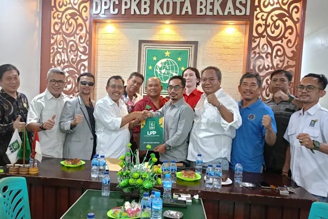 Richard Efendi Siregar selaku Ketua Umum Relawan Nasional Pro Prabowo Gibran (Pa-Gi) memimpin tim Kaesang dalam pengambilan formulir di Sekretariat DPC PKB Kota Bekasi, Ruko Sentra Niaga Kalimalang, Jl. Ahmad Yani, Bekasi Selatan.