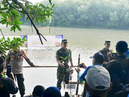 Muara Gembong Bekasi – Dalam Rangka Melindungi Pesisir Pantai dari Abrasi Dandim 0509 Kabupaten Bekasi Dampingi Danrem 051/Wijayakarta Melaksanakan Penanaman Mangrof