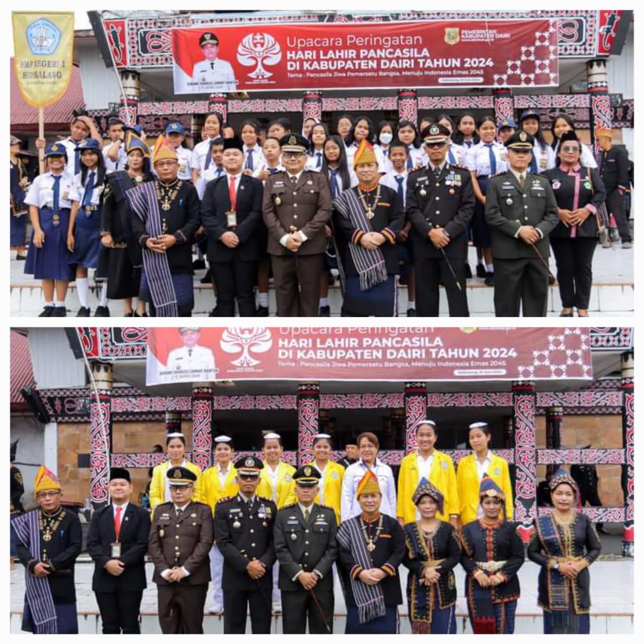 DAIRI ||Pemerintah Kabupaten Dairi menggelar upacara peringatan Hari Lahir Pancasila. Upacara peringatan Hari Lahir Pancasila digelar di depan Kantor Bupati Dairi, Sabtu (1/6/2024).