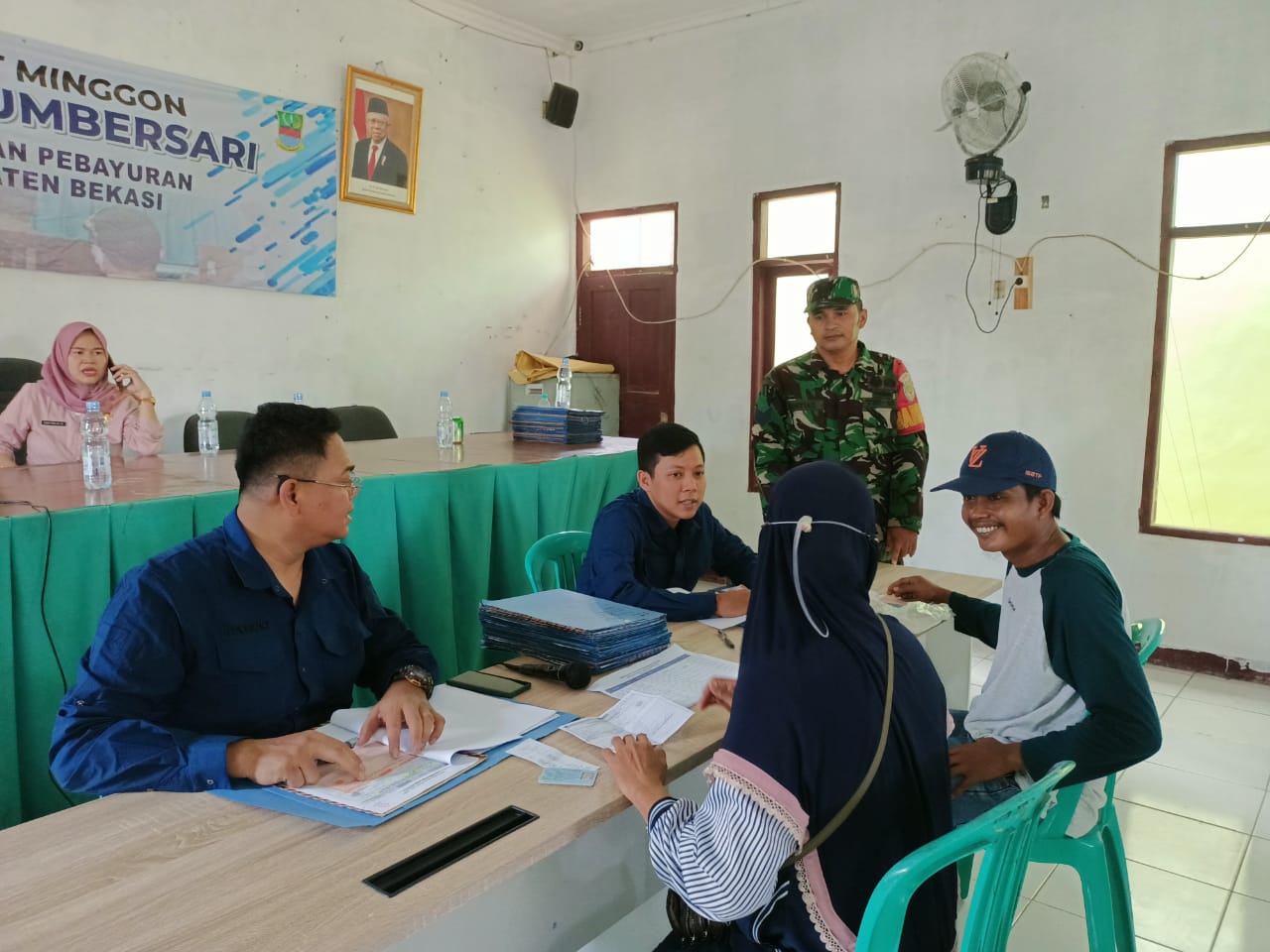 Bekasi Pebayuran – Sebagai Upaya Mendukung Program Pemerintah Desa, Serma Martias Babinsa Koramil 11 Pebayuran memberikan pendampingan kepada masyarakat Dalam rangka penerbitan sertifikat Pendaftaran Tanah Sistematis Lengkap (PTSL) di Kantor Desa Sumbersari, Kecamatan Pebayuran,