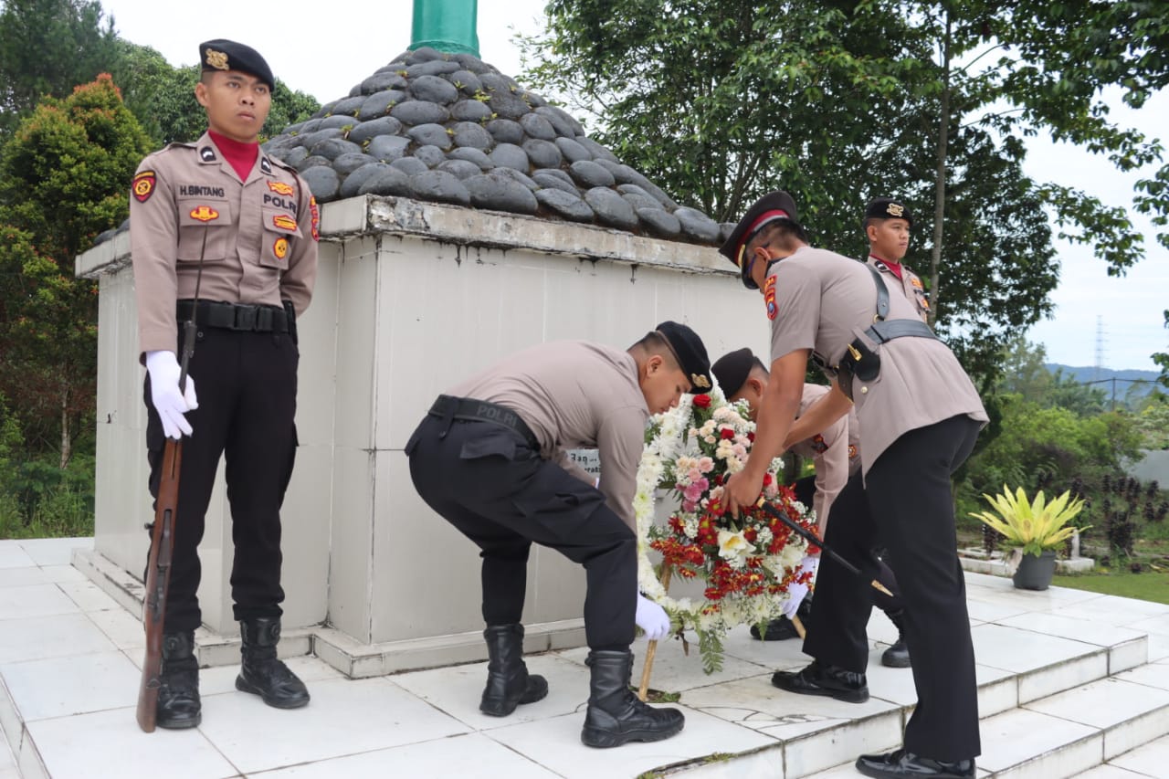 Dalam Rangka Hari Bhayangkara Ke-78 Tahun 2024, Kapolres Dairi AKBP Agus Bahari, P.A., SIK, SH, M.Si memimpin Pelaksanaan Upacara Ziarah Rombongan Dan Tabur Bunga Di Taman Makam Pahlawan. Senin (24/06/2024)
