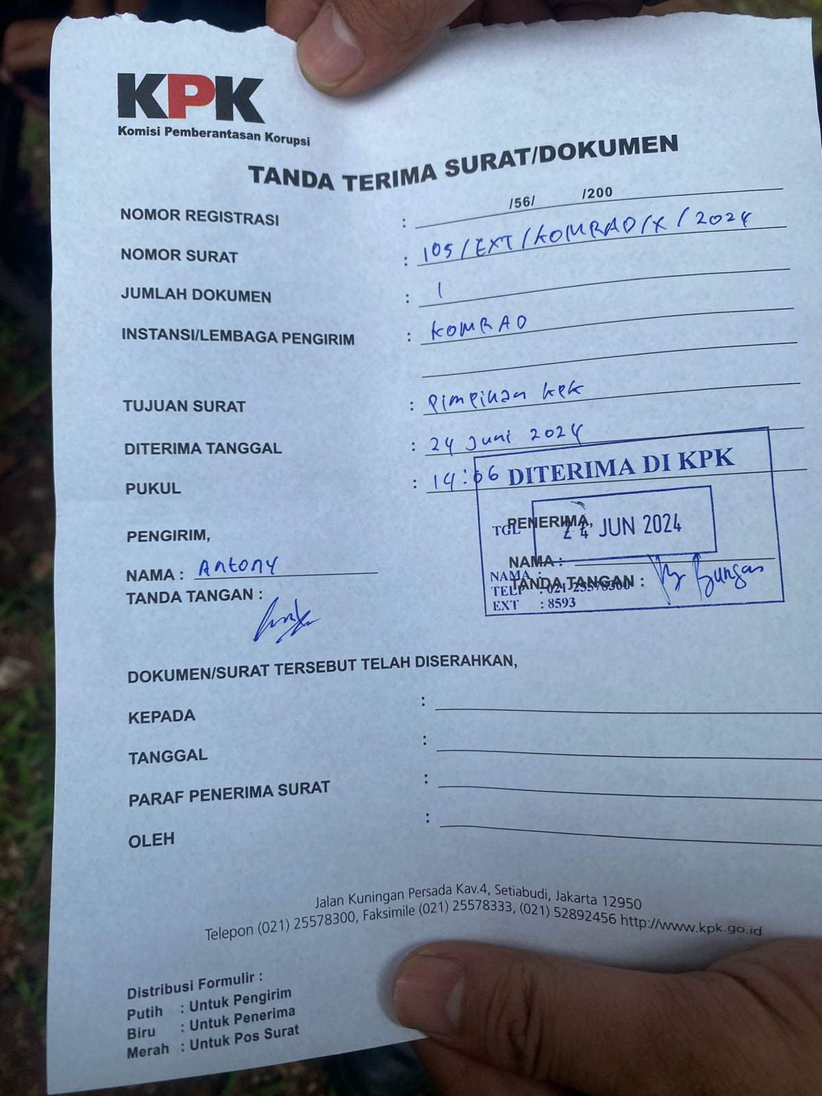 Maka dari itu kami dari KOMRAD Pancasila mengambil sikap dengan melakukan laporan masyarakat ke KPK pada hari Senin 24 Juni serta menuntut :