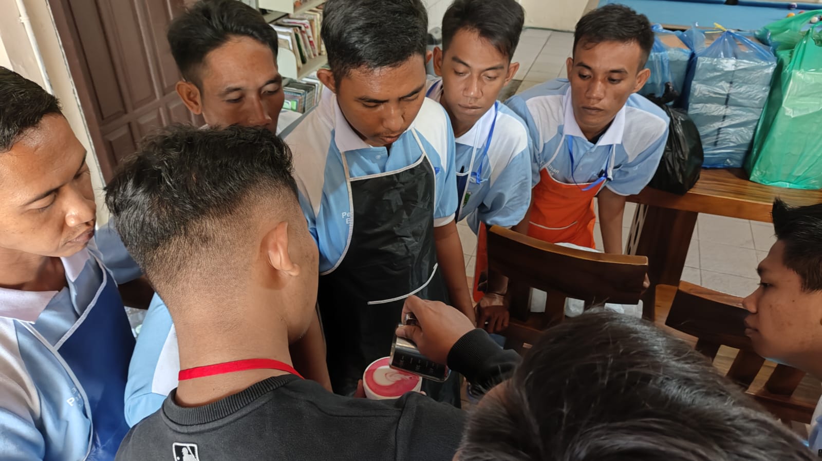 Dalam suasana yang penuh antusiasme, para WBP belajar langkah demi langkah dalam pembuatan Coffee Latte dengan bimbingan langsung dari instruktur Disnaker.