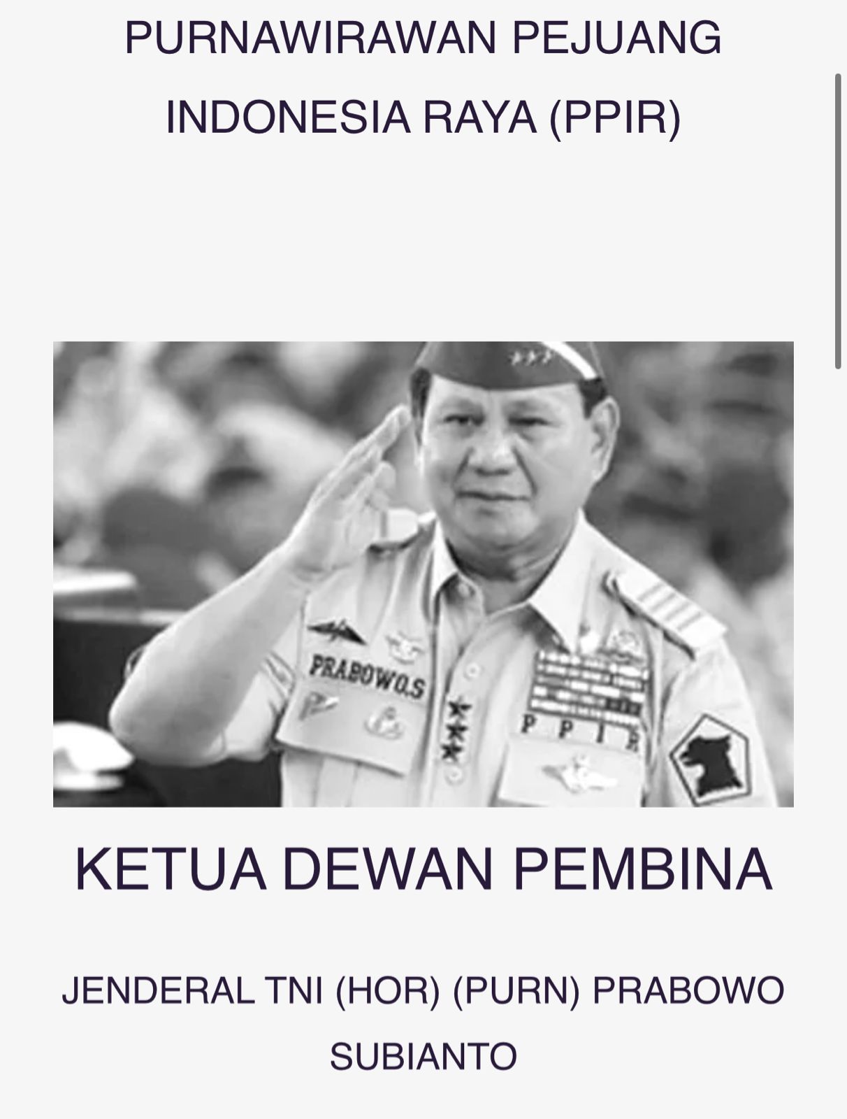 PPIR (Purnawirawan Pejuang Indonesia Raya) adalah organisasi yang dibentuk oleh Prabowo Subianto, yang dikenal dengan kode sandi “08” di lingkungan militer.