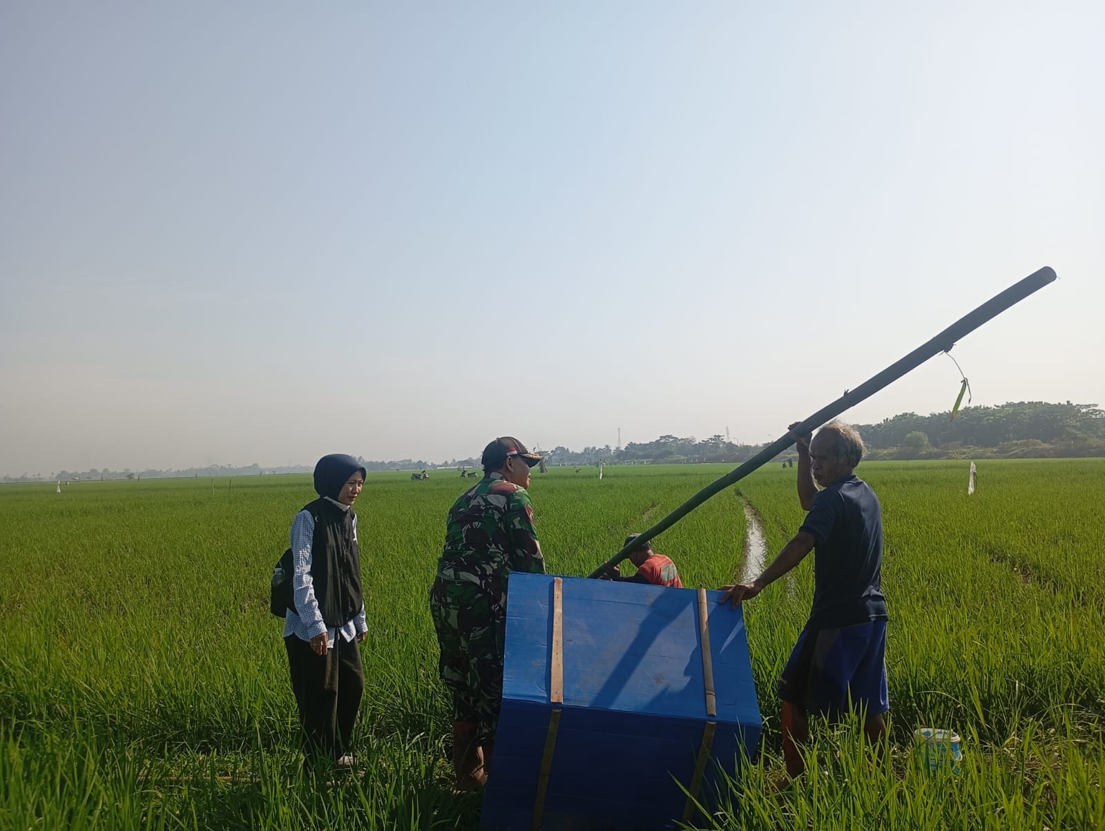 Kabupaten Bekasi – Dalam upaya mengurangi populasi hama tikus yang merusak tanaman padi, anggota Babinsa Koramil 12 Serang Baru Kodim 0509 Kabupaten Bekasi mendampingi petugas POPT Cikarang Pusat dan petugas PPL Pertanian untuk membangun rumah burung hantu di Kampung Peparean, Desa Pasir Tanjung, Minggu 14 Juli 2024.