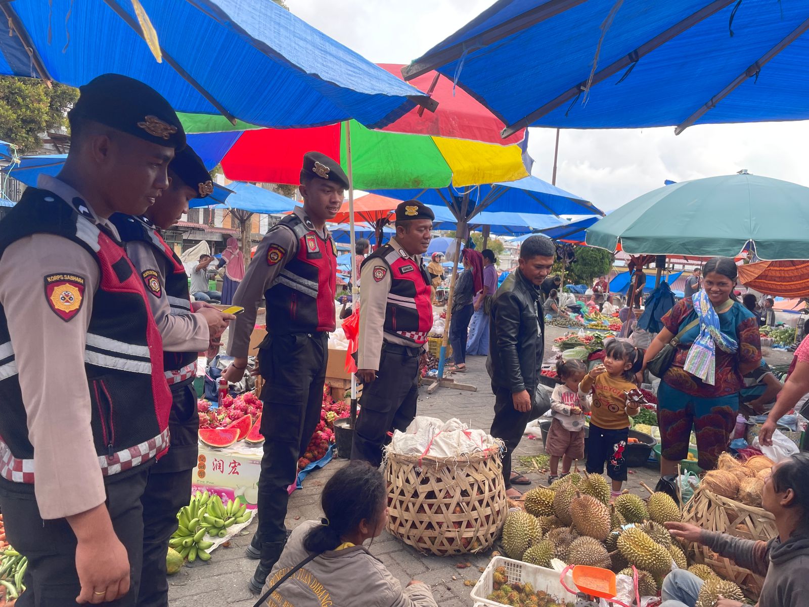 Selama Pelaksanaan kegiatan Para Personil Sat Samapta juga mengajak masyarakat berdialog dalam menyampaikan himbauan kamtibmas pentingnya dalam menjaga barang miliknya serta tidak membawa barang mewah yang berlebihan saat beraktivas di Pusat pasar.