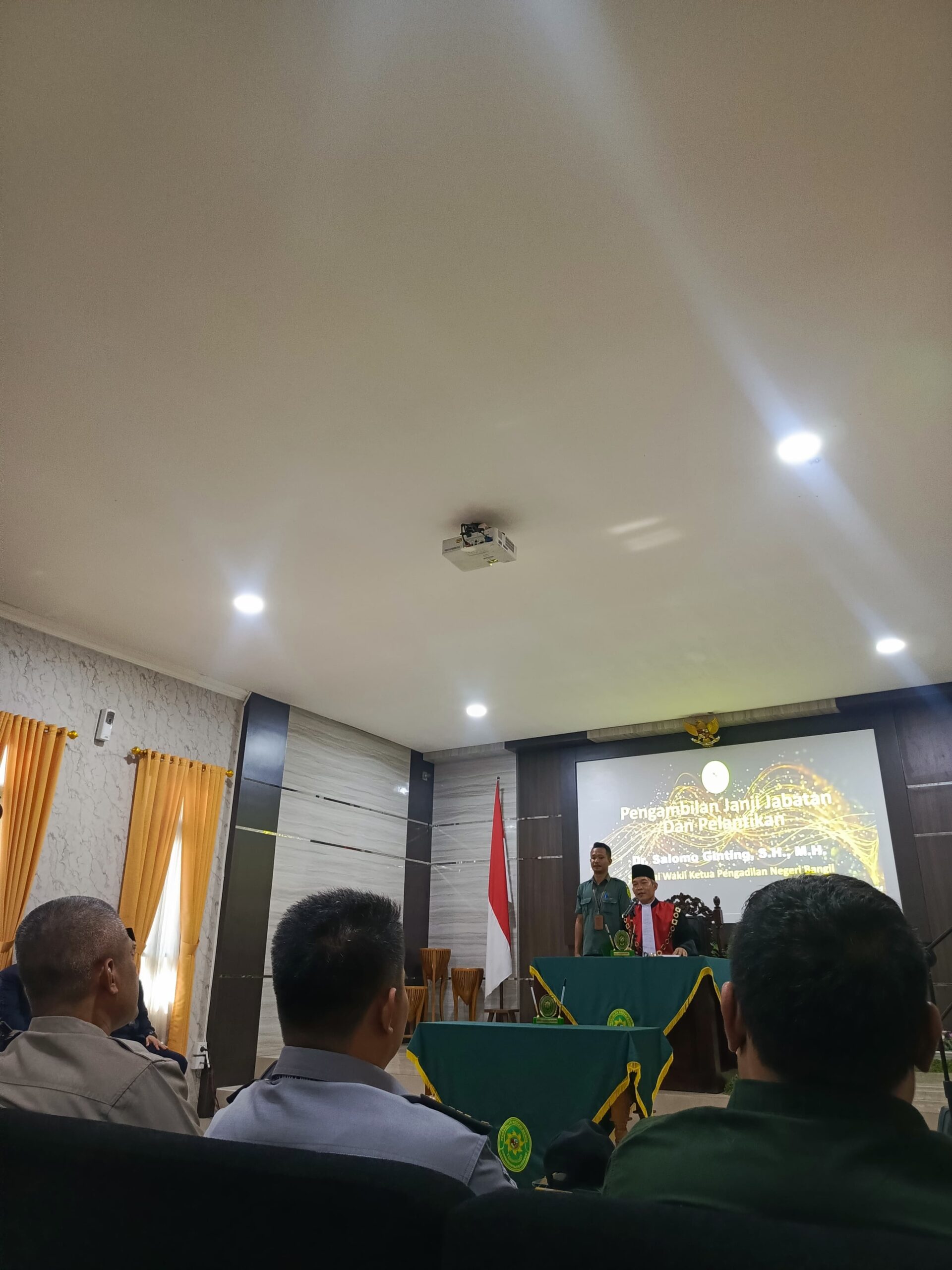 Suasana pelantikan berlangsung khidmat, dengan pengambilan janji jabatan yang dipimpin oleh Ketua Pengadilan Negeri Bangil. Pelantikan ini merupakan langkah penting dalam memperkuat jajaran kepemimpinan di Pengadilan Negeri Bangil, guna mendukung penegakan hukum yang lebih efektif dan efisien di wilayah Pasuruan.