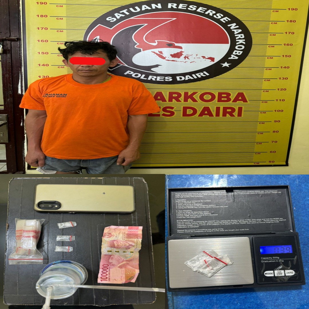 DAIRI (KPN) – Satuan Reserse Narkoba Polres Dairi telah mengamankan seorang individu berinisial DK (38), warga Desa Sitinjo I, Kecamatan Sitinjo, Kabupaten Dairi, yang diduga terlibat dalam penyalahgunaan narkotika jenis sabu. DK ditangkap di sebuah gubuk yang terletak di perladangan milik seseorang berinisial EB di Kelurahan Pegagan Julu I, Kecamatan Sumbul, Kabupaten Dairi, pada hari Rabu, 14 Agustus 2024.