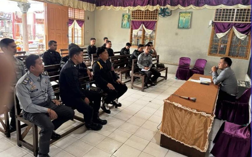 Kepala Kesatuan Pengamanan Rutan Tarutung, James Bond Naibaho menggelar rapat internal bersama regu pengamanan dan staf pengamanan Rutan Tarutung di aula serbaguna Rutan.