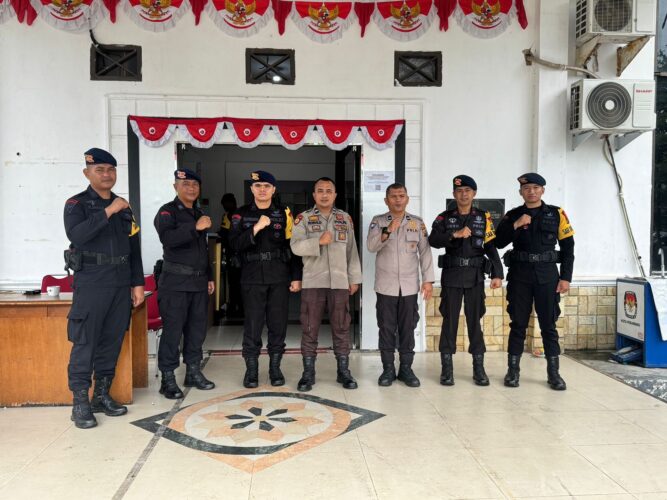 PEKANBARU – Personel Satgas Tindak Subsatgas SAR Satuan Brimob Polda Riau yang tergabung dalam Operasi Mantap Praja Lancang Kuning 2024 Polda Riau terus meningkatkan upaya pengamanan untuk menjaga situasi keamanan dan ketertiban masyarakat (Kamtibmas) di Kantor KPU Kota Pekanbaru, Selasa (15/10)
