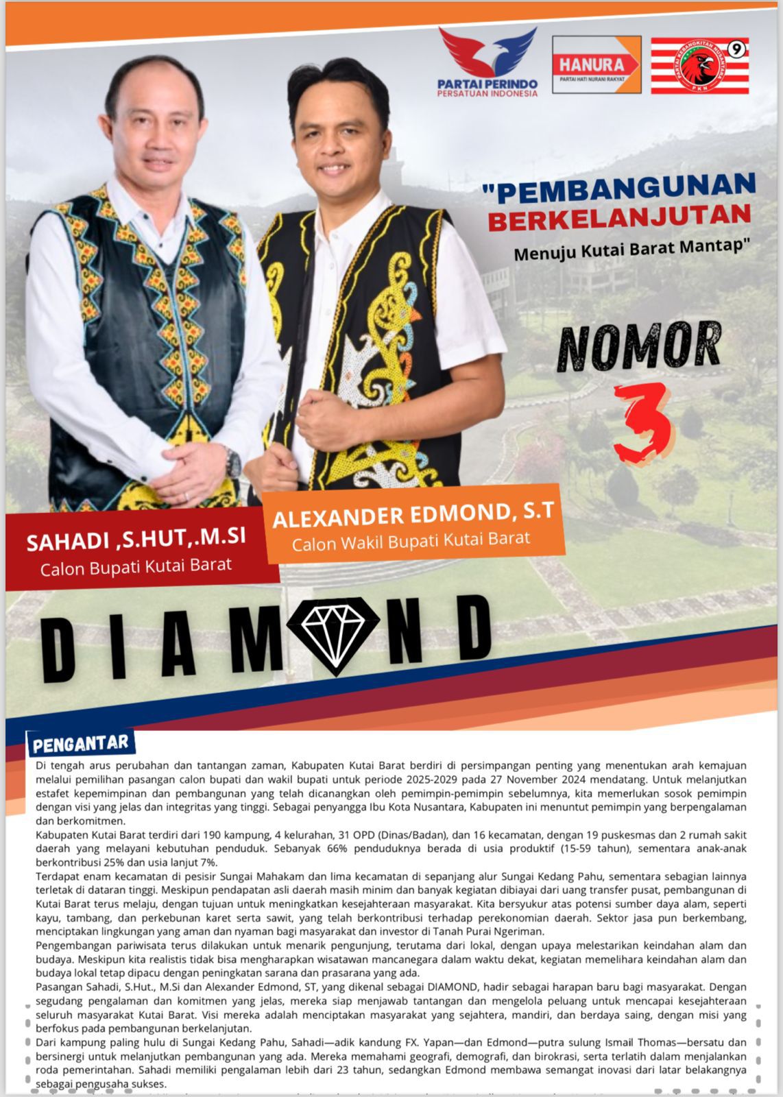 Mengusung tema kampanye yang sederhana namun sarat makna, pembangunan berkelanjutan menuju Kubar Mantap, pasangan Diamond bukan hanya berkampanye dengan mengumpulkan massa, namun upaya mengenal kebutuhan masyarakat Kubar dengan cara blusukan. Bagi masyarakat Kubar, apa yang dilakukan oleh pasangan Sahadi Momon bukan merupakan pencitraan, namun itu sudah menjadi gaya hidup beliau yang humanis.