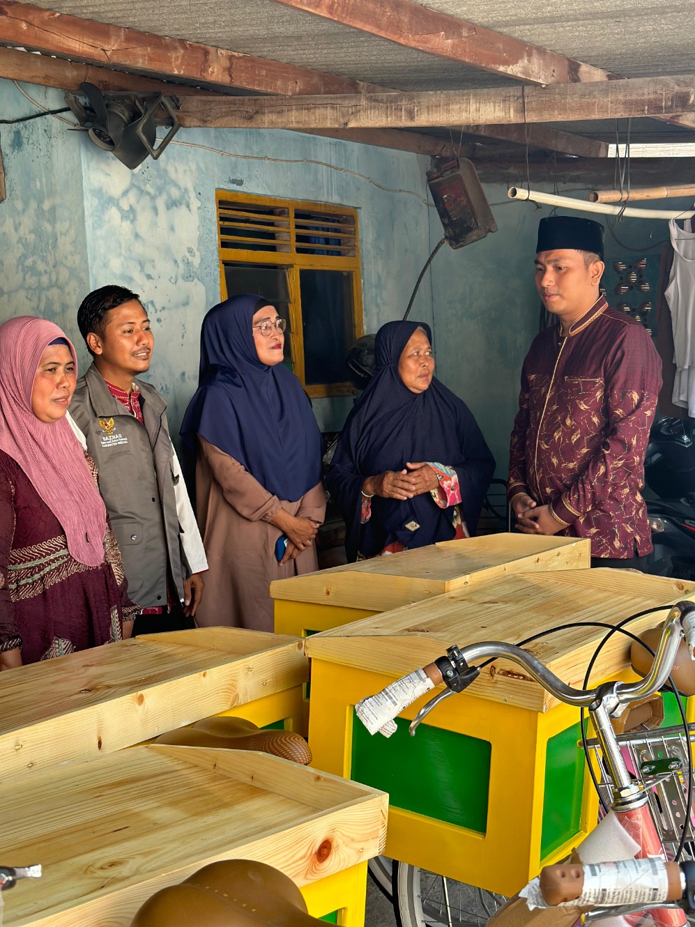 Pebayuran Bekasi- Badan Amil Zakat Nasional (Baznas) memberikan bantuan berupa gerobak sepeda kepada pelaku UMKM di Kampung Babakan, RT 01/03, Kelurahan Kertasari, Kecamatan Pebayuran, Kabupaten Bekasi, pada Selasa, 22 Oktober 2024. Bantuan tersebut diterima langsung oleh Lurah Kertasari, Putre Adi Wibowo, S.STP, yang didampingi oleh para staf kelurahan.