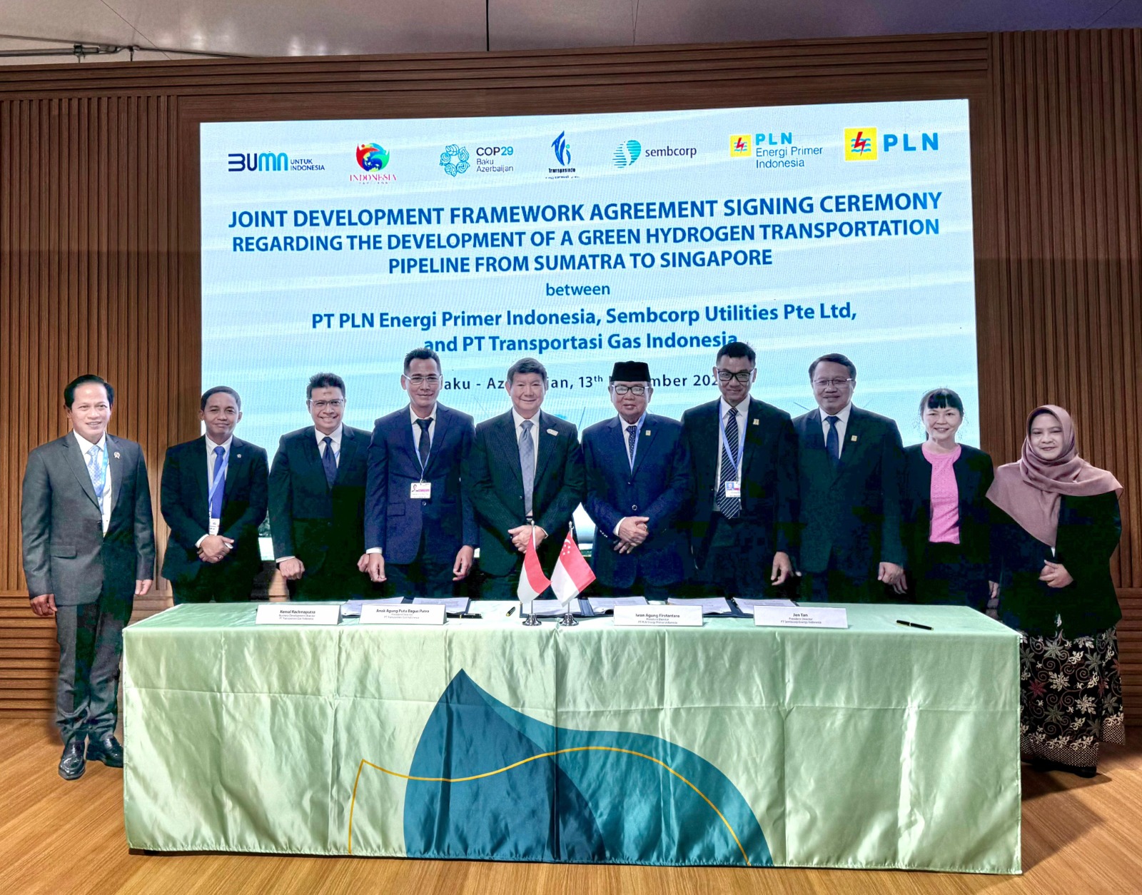 Jakarta, 13 November 2024 – PT Transportasi Gas Indonesia (PT TGI), Sembcorp Utilities Pte Ltd. (Sembcorp), dan PT PLN Energi Primer Indonesia (PT PLN EPI) menandatangani Joint Development Framework Agreement (JDFA) pada tanggal 13 November 2024 di COP29 Baku, Azerbaijan.