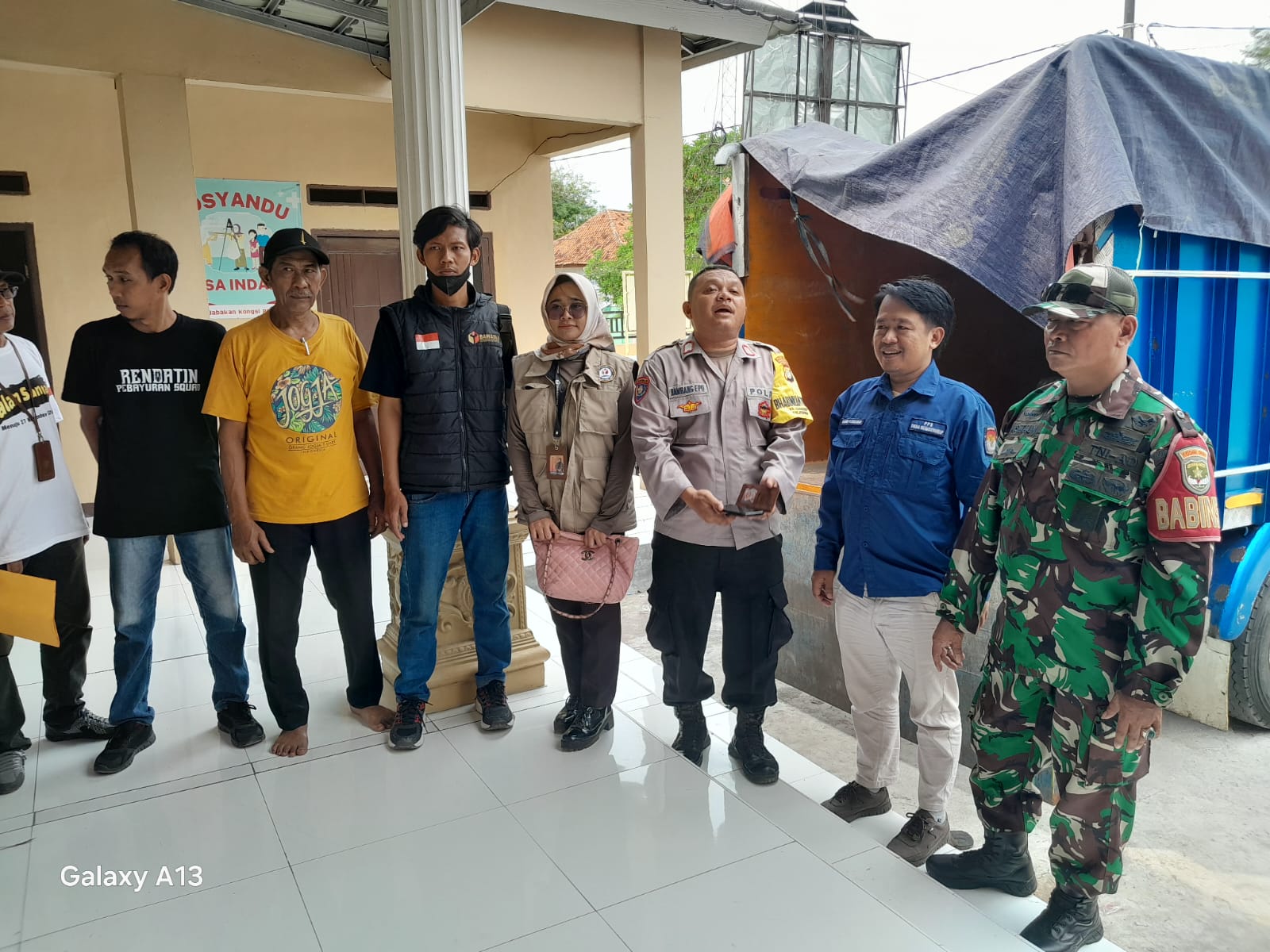 Babinsa Koramil 11 Pebayuran Kodim 0509/Kabupaten Bekasi, Serma Asmaun, bersama Bimaspol Desa Sumberurip, Bripka Bambang, hadir untuk memastikan keamanan logistik Pilkada di lokasi.