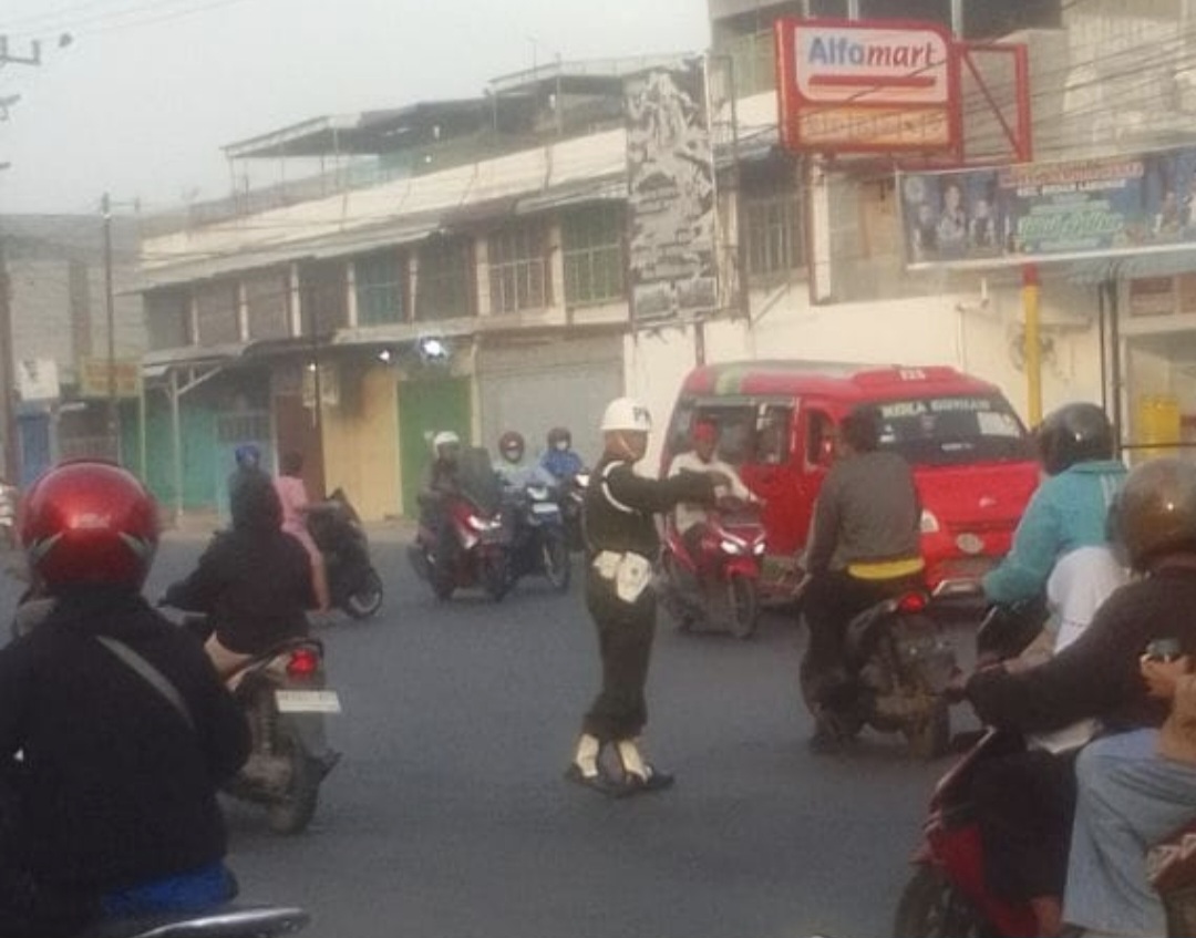 Mereka aktif mengatur arus kendaraan dan membantu pengguna jalan agar tetap tertib, khususnya di kawasan pasar yang menjadi pusat keramaian.