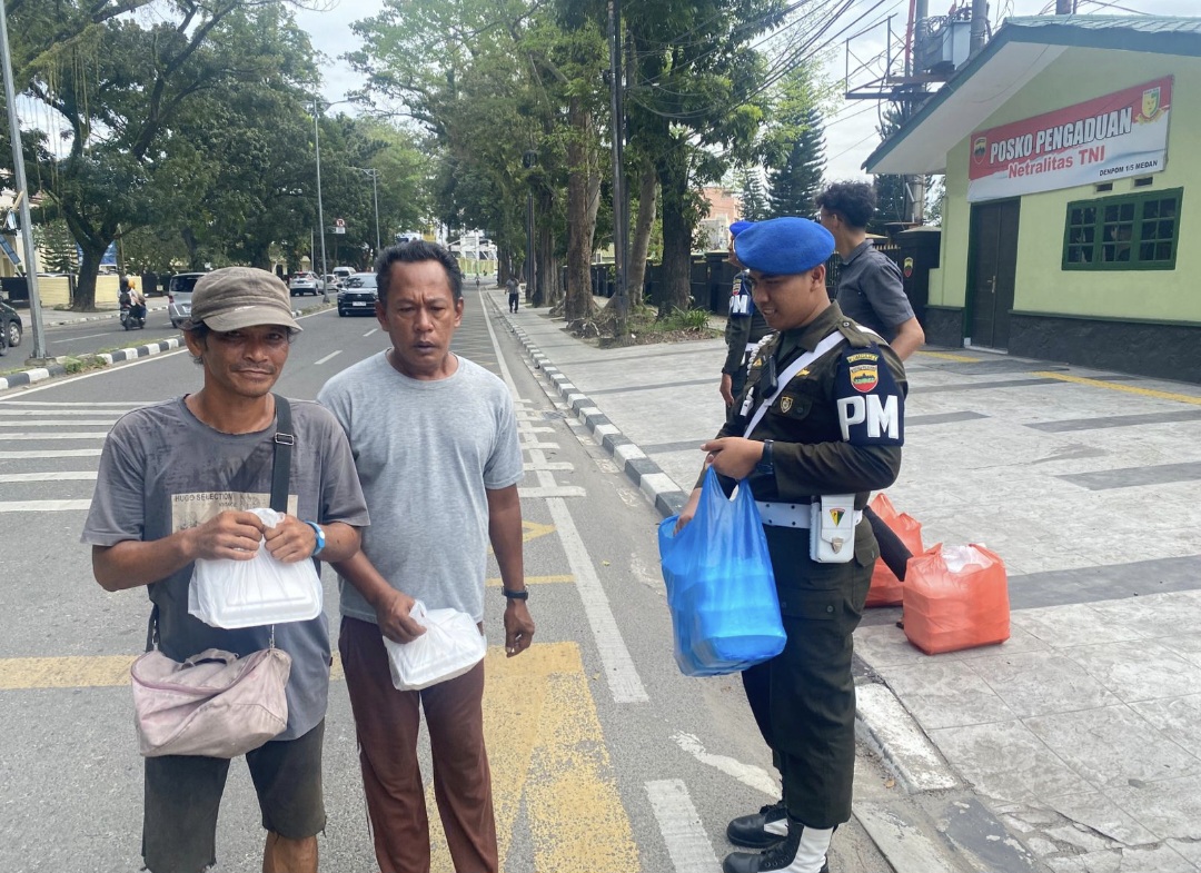 Dalam semangat berbagi dan kepedulian, Detasemen Polisi Militer (Denpom) I/5 kembali melaksanakan kegiatan rutin Jumat Berkah di depan markasnya, Jalan Letjen TNI Suprapto, Medan, Jumat (13/12/2024).