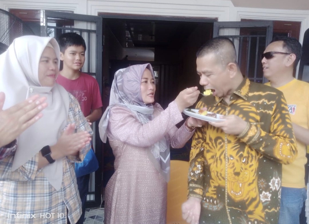 Dalam acara yang diwarnai dengan doa dan kebersamaan tersebut, Chairum yang juga Ketua Persatuan Pewarta Polrestabes Medan didampingi istri tercinta, Mawaddah, memotong nasi tumpeng sebagai simbol rasa syukur.