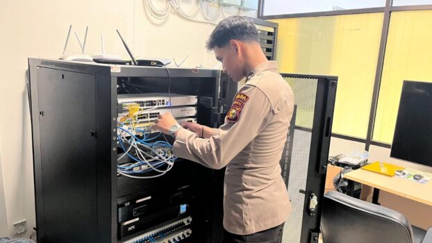 PEKANBARU – Untuk mendukung lancar nya sistem kerja alat Teknologi Informasi dan Komunikasi dalam Operasi Lilin Lancang Kuning 2024, Satgas Teknologi Informasi dan Informasi (TIK) Polda Riau melaksanakan pengecekan dan perawatan serta menyiapkan segala perangkat dan alat komunikasi, Selasa (31/12/2024).
