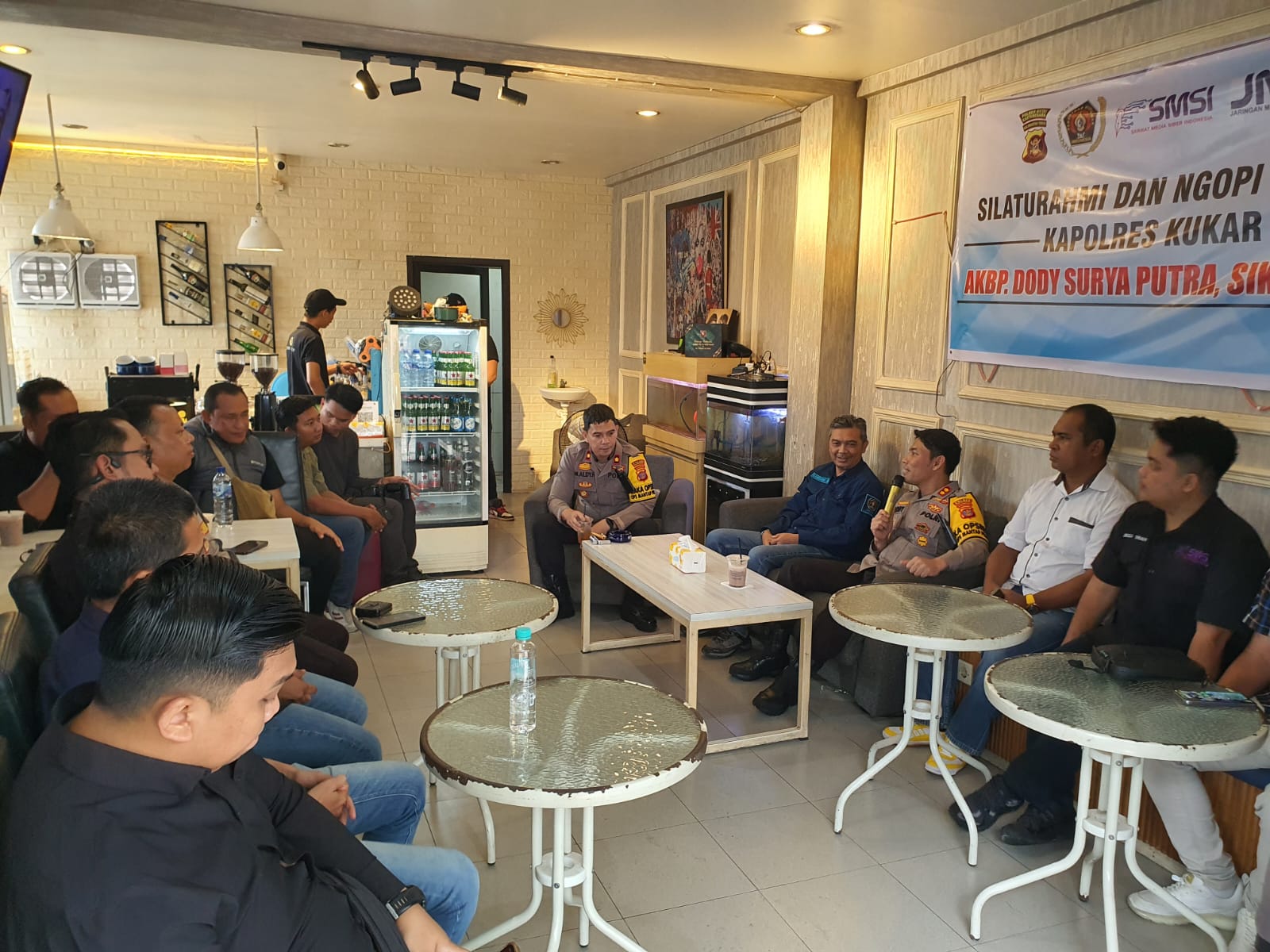 Kukar – Silaturahmi dan Ngopi Kapolres Kutai Kartanegara bersama Jurnalis Kutai Kartanegara berlangsung dengan sukses pada Selasa (4/2) di Royal Cafe, Jalan Mawar, Kelurahan Panji, Kecamatan Tenggarong, Kabupaten Kutai Kartanegara.