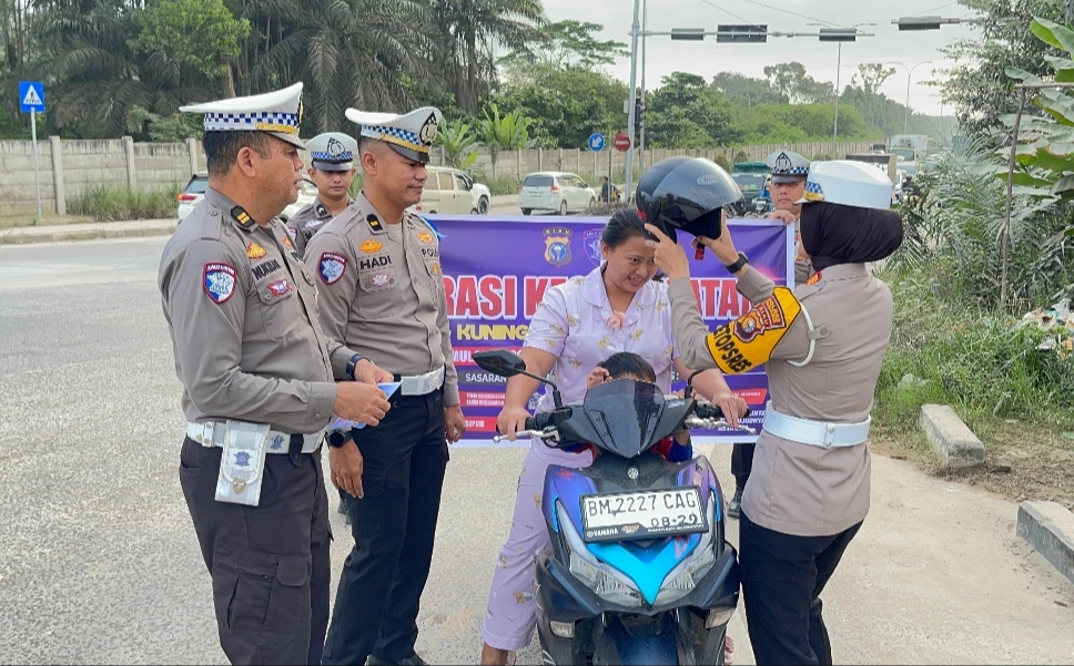 Disamping membagikan helm gratis, petugas juga memberikan edukasi dan himbauan kepada pengendara agar selalu menggunakan helm demi keselamatan berkendara. Dengan adanya Operasi Keselamatan Lancang Kuning 2025 ini, diharapkan masyarakat semakin sadar akan pentingnya menaati peraturan lalu lintas untuk mengurangi risiko kecelakaan.
