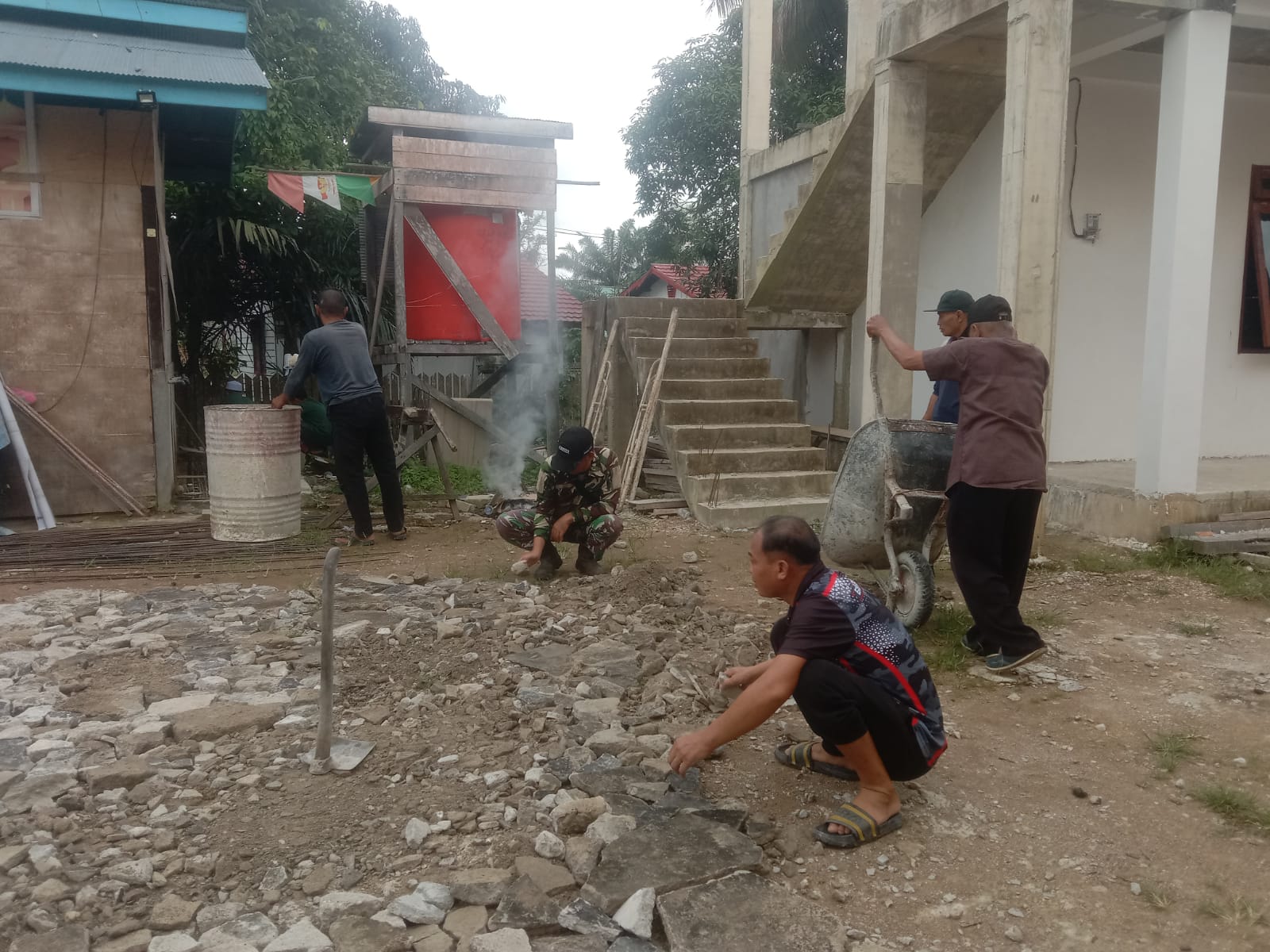 Sejak pagi hari, anggota TNI dan Posek Kembang Janggut hadir di lokasi dengan semangat tinggi, bersama warga, mereka bekerja bahu-membahu untuk memperbaiki halaman Masjid Al-Ilham. Semangat gotong royong yang tercipta di antara mereka tampak begitu kental, tidak ada perbedaan status atau jabatan semuanya bekerja dengan penuh kekompakan dan kesederhanaan.