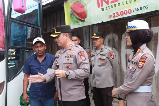 PELALAWAN – Kapolres Pelalawan, AKBP Afrizal Asri, SIK, turun ke jalan untuk mensosialisasikan tagline “Mudik Aman Keluarga Nyaman” dan Hotline 110 kepada masyarakat dan para pengemudi kendaraan barang ataupun kendaraan penumpang di Jalan Lintas Timur Kota Pangkalan Kerinci, Kabupaten Pelalawan, Riau.sabtu (22/3/2025).