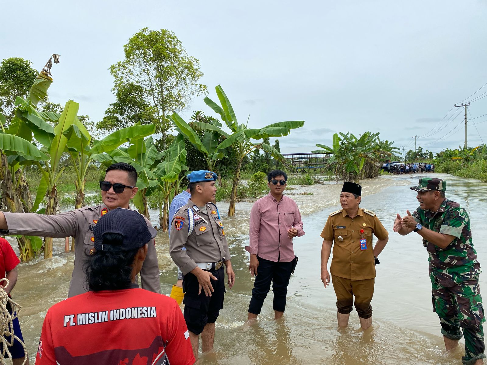 Kukar – Forkopimcam Kenohan bersama Polsek Kenohan melakukan pengecekan akses jalan poros Sekampar-Kota Bangun yang terputus akibat banjir di Kecamatan Kenohan. Pengecekan dilakukan pada Senin (21/4/2025).