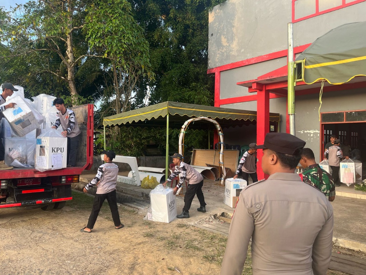 Proses pemindahan logistik dimulai sekitar pukul 17.00 WITA dengan pengawalan ketat dari personel gabungan. Sebanyak 20 personel dikerahkan, terdiri dari anggota Polsek Sebulu, Koramil Sebulu, serta unsur Linmas yang berkoordinasi secara apik untuk memastikan keamanan seluruh dokumen dan peralatan PSU.