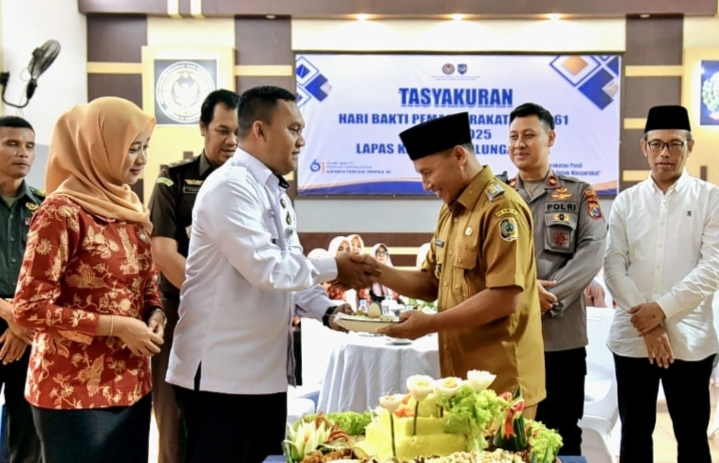 Tulungagung_InfoPAS – Lembaga Pemasyarakatan (Lapas) Kelas IIB Tulungagung menyelenggarakan kegiatan tasyakuran dalam rangka memperingati Hari Bhakti Pemasyarakatan ke-61 pada Senin, 28 April 2025. Acara berlangsung khidmat di Aula R. Moestopo dan digelar serentak bersama seluruh Unit Pelaksana Teknis (UPT) Pemasyarakatan se-Indonesia secara virtual yang dipimpin langsung oleh Menteri Imigrasi dan Pemasyarakatan.