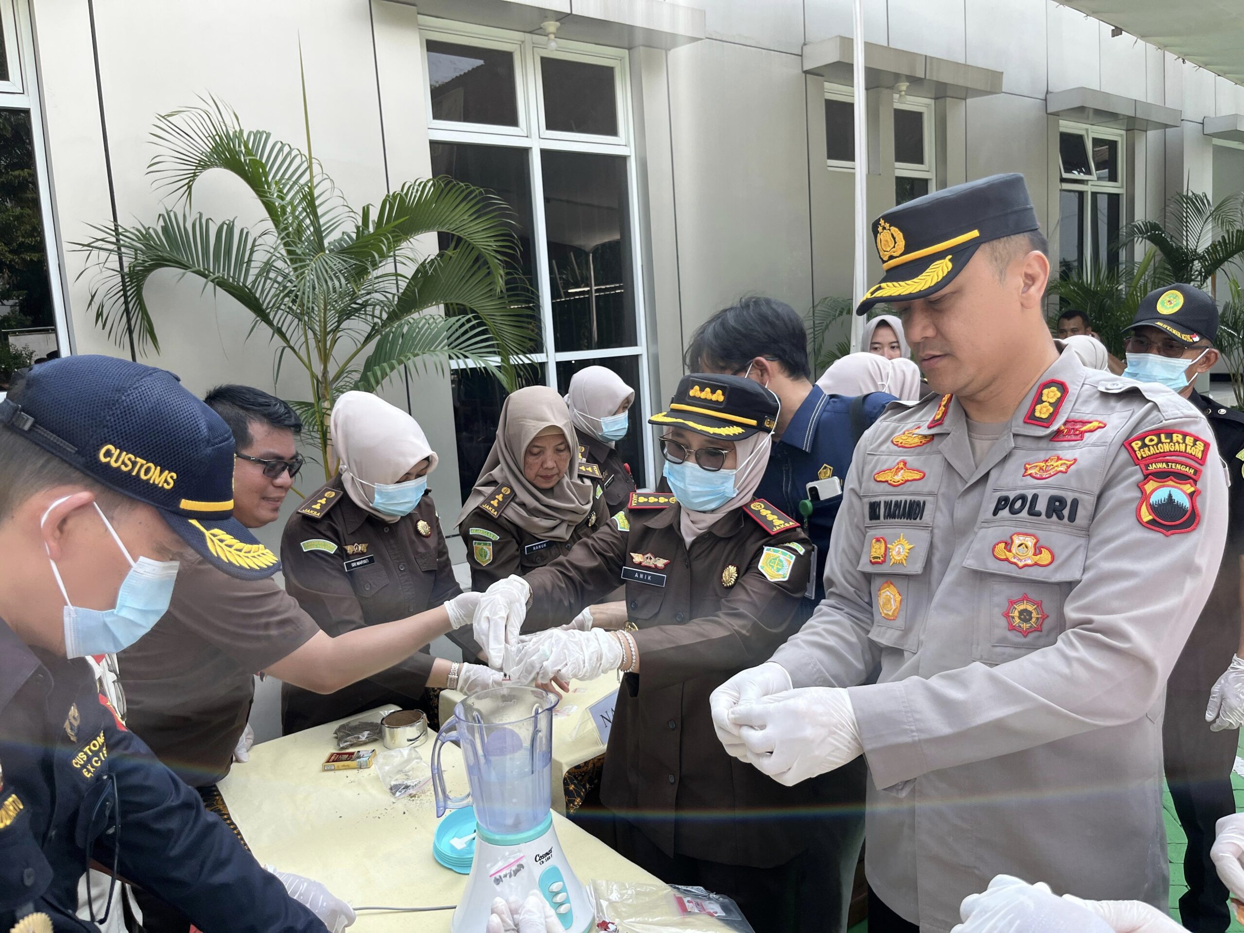 Kasi PAPBB Yasozisokhi Zebua juga menerangkan bahwa dalam pelaksanaan pemusnahan barang bukti turut hadir langsung Kapolres Pekalongan Kota, Ketua PN Kelas IB Pekalongan diwakili Panitera Muda Pidana, Kepala Kantor Pengawasan dan Pelayanan Bea dan Cukai Tipe Madya Pabean C Tegal, mewakili BNNK Batang, mewakili Kepala Rutan Kelas IIA Pekalongan, mewakili Rupbasan Pekalongan, Kepala Kasat Pol P3KP Pekalongan, mewakili Kepala KPKNL Pekalongan, mewakili Kepala Kantor Unit Kerja Kantor (UKK) Imigrasi Pekalongan, mewakili Kadis Kesehatan Kota Pekalongan, Kasat Reskrim Polres Pekalongan Kota diwakili KBO Reskrim, Kasat Res Narkoba dan Kasat Tahti Polres Pekalongan Kota.