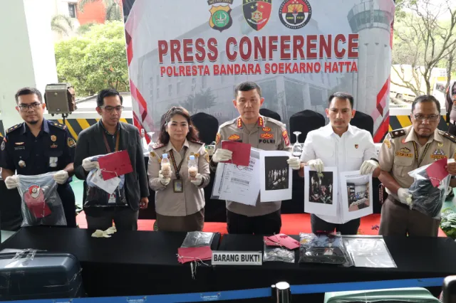 “Masing-masing tersangka pria berinisial RK, AJ, JS, WW, DS, RS dan AN. Sementara HE, U, LNH, S dan B masuk dalam daftar pencarian orang (DPO),” kata Ronald dalam konferensi pers di Polresta Bandara Soetta, Rabu (11/6).