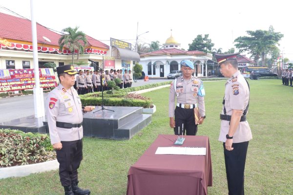 PELALAWAN – Kapolres Pelalawan, AKBP John Lousi Letedara SIK pimpin upacara serah terima jabatan Kapolsek Ukui, Selasa(19/8/2025).
